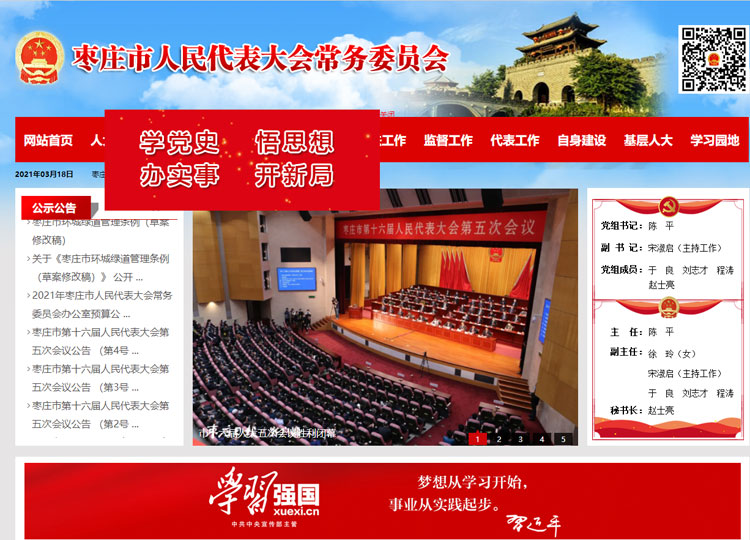 所屬行業(yè):政府 單位名稱:棗莊市人民代表大會(huì)常務(wù)委員會(huì)網(wǎng)站地址:http://www.zzsrd.gov.cn/